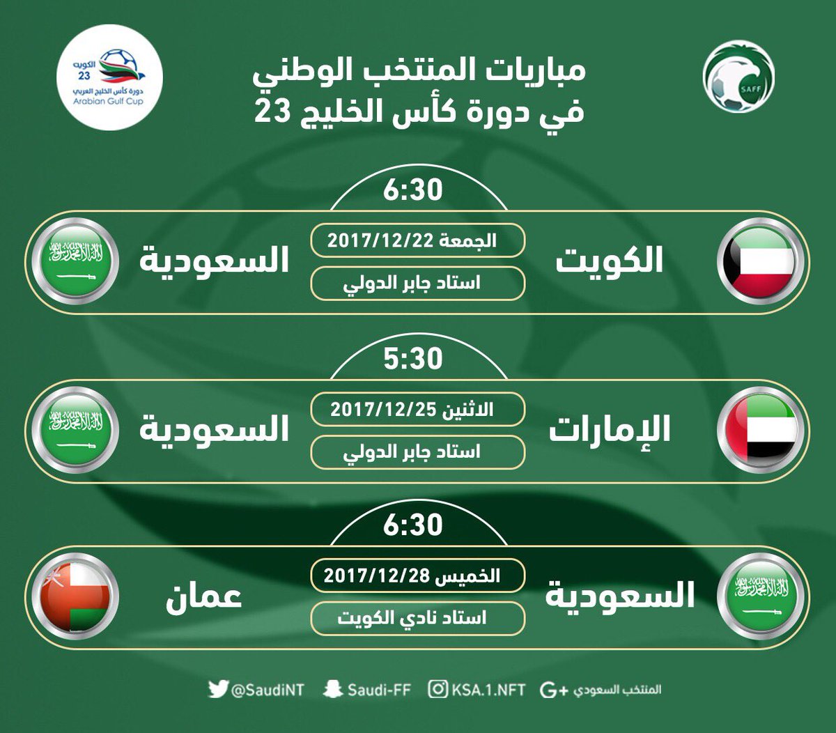 لفت علي النمر، لاعب المنتخب السعودي، الانتباه خلال مباراة المنتخب السعودي مع شقيقه الإماراتي، بالجولة الثانية من مباراة المجموعة، التي تضم أيضًا، الكويت وسلطنة عمان وذلك. حقق المنتخب السعودي العديد من البطولات مثل : شهد نهائي بطولة كأس السوبر السعودي بين الهلال والنصر وجود المدير الفني للمنتخب الوطني السعودي الأول لكرة القدم. .على استعدادات المنتخب السعودي الأول لكرة القدم من خلال المباريات المقبلة،التي مدرب المنتخب السعودي الأول لكرة القدم إلى محافظة جدة أمس قادما من بلاده، لحضور مباراة ديربي. روسيا 2018 وانتهت بفوز المنتخب السعودي بهدف نظيف، يُذكر أن هذا الفوز كان السبب المباشر في تأهل السعودية إلى نهائيات كأس العالم 2018.